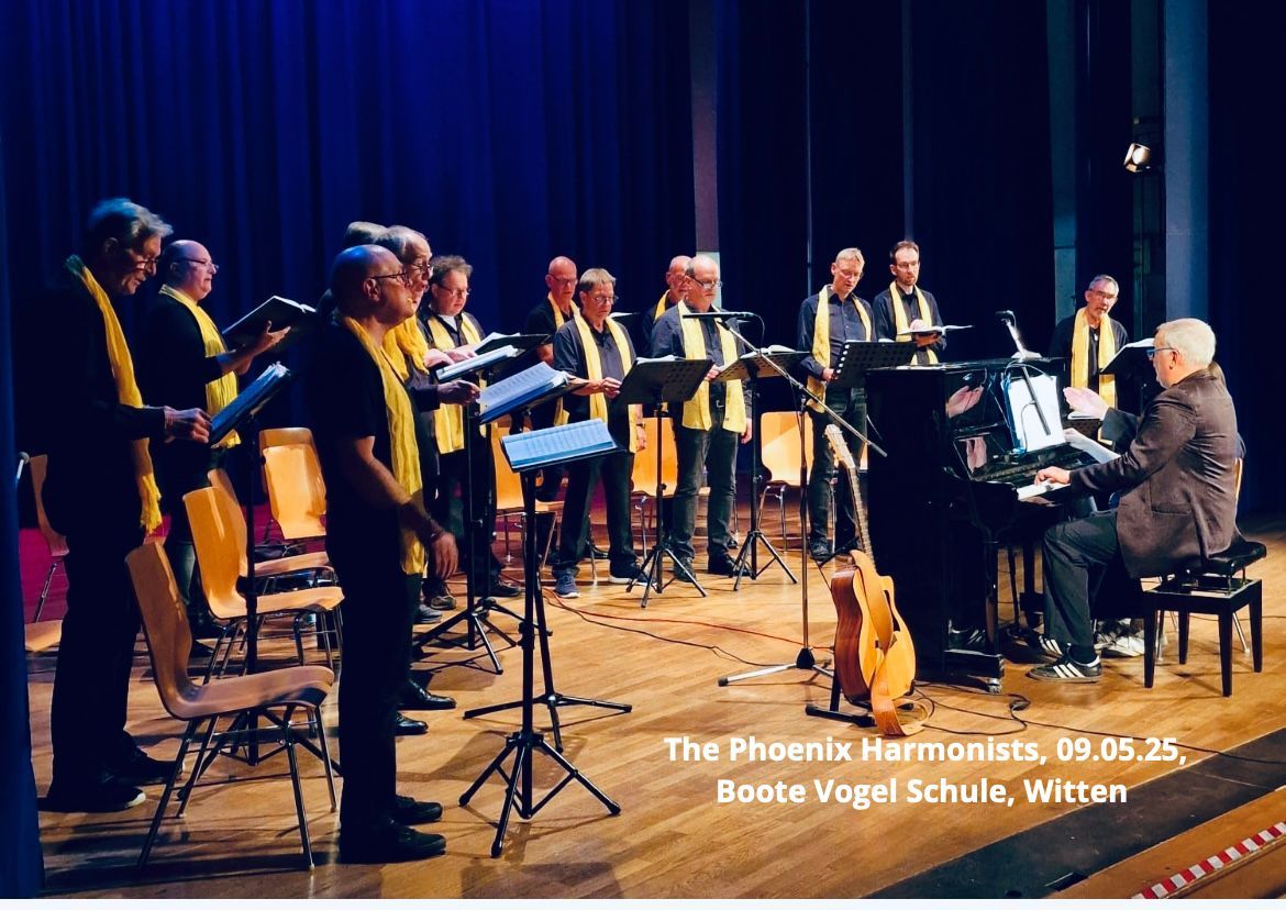 Denn: THE PHOENIX HARMONISTS sind ein reines, vierstimmiges Männerensemble (seit 2012 in der Dortmunder Chorlandschaft präsent und seit 2019 unter der Leitung von Craig Bermingham) mit modernem Repertoire und Arrangements aus Rock, POP, Folk, Gospel von 1960 bis heute.